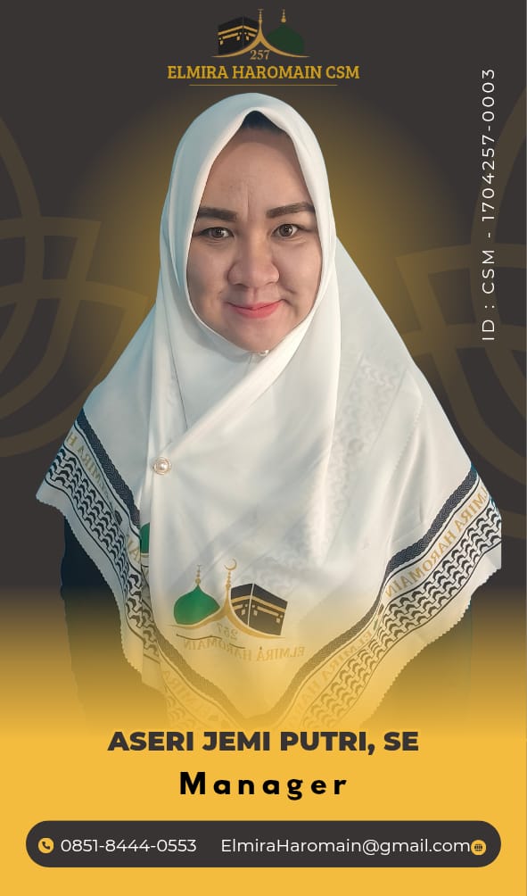 "Yang mau ke tanah suci wajib nyobain manasik Haji disini bikin nagih bareng bersama elmira haromain CSM. perjalanan dan pendampingan mantap benar sesuai dengan motonya melayani sepenuh hati. ayoo yang mau umroh, travel sudah berizin dan harga terjangkau fasilitas tidak mengecewakan